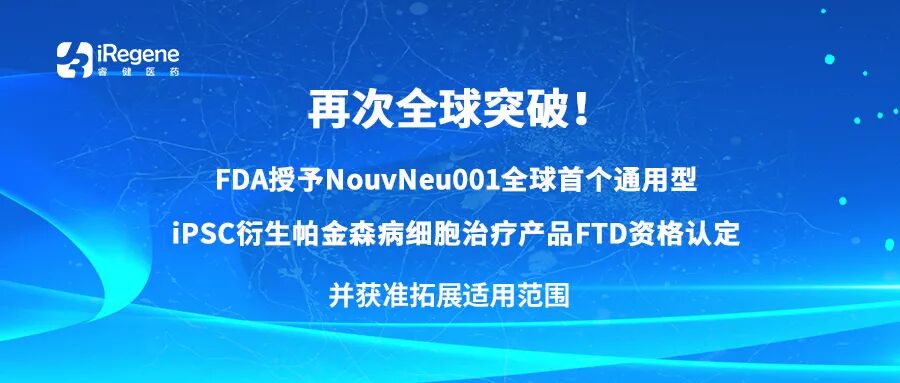 再次全球突破!FDA授予NouvNeu001全球首个通用型iPSC衍生帕金森病细胞治疗产品FTD资格认定,并获准拓展适用范围